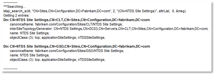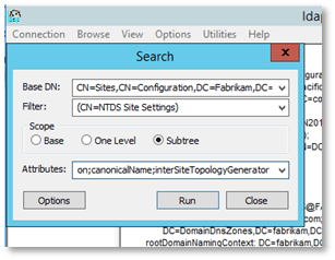 Base DN: CN=Sites,CN=Configuration,<DN of Forest Root> (example: CN=Sites,CN=Configuration,DC=fabrikam,DC=com)