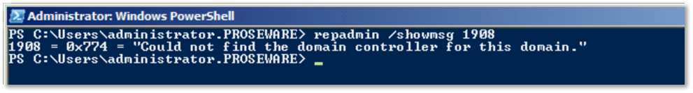 | Repadmin /showmsg <Error> | Displays the error message for a given error number. |