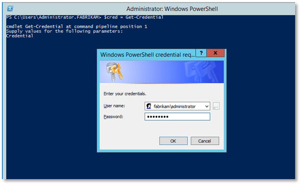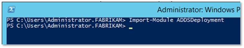 Install-ADDSDomainController –NoGlobalCatalog:$false –CreateDnsDelegation:$false –CriticalReplicationOnly:$false –DatabasePath “C:\Windows\NTDS” –DomianName “fabrikam.com” –InstallDNS:$true –LogPath “C:\Windows\NTDS” –ReBootOnCompletion:$false –ReplicationSourceDC “DC01.fabrikam.com” –SiteName “Default-First-Site-Name” –SysvolPath “C:\Windows\SYSVOL” –Force:$true