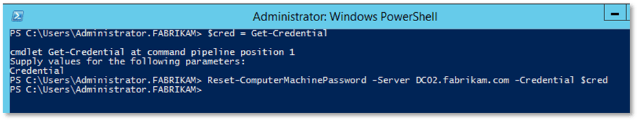 Step 8: Run, Reset-ComputerMachinePassword –Server <ServerName> -Credential $cred