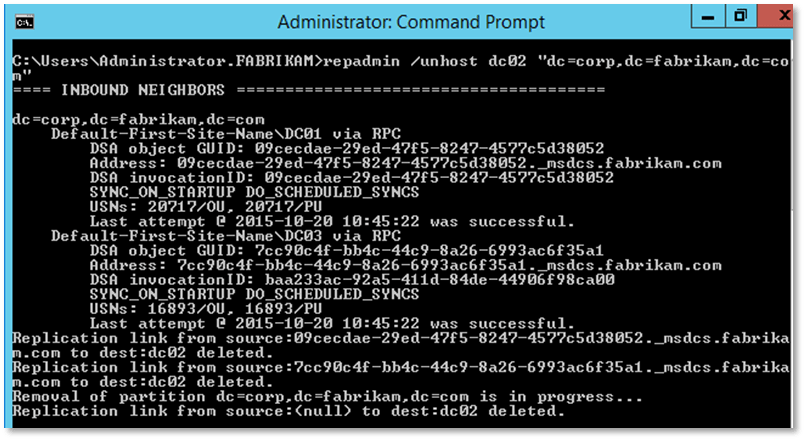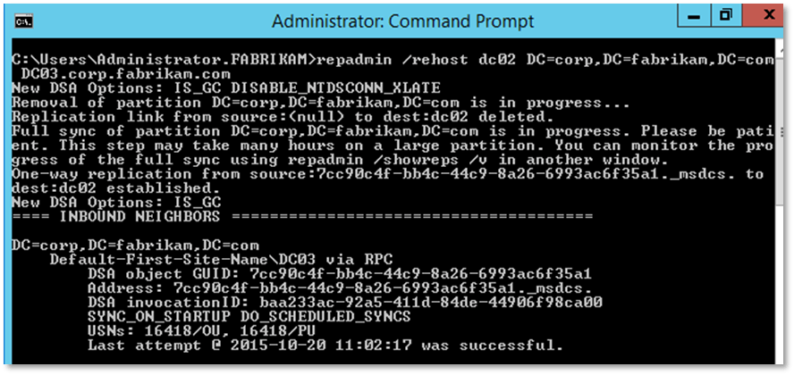 Additional information on Repadmin.exe is available here: https://technet.microsoft.com/en-us/library/cc736571(v=ws.10).aspx