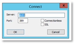 Step 3: In the Connect dialog box, enter the name of a Domain Controller for the Server you want to connect to and then click OK