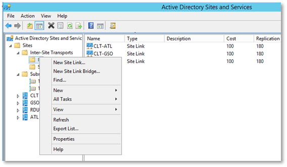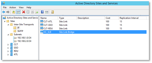 By default, Bridge All Site Links (BASL) is enabled in Active Directory. If your environment is not fully routed, then you will want to disable BASL. By fully routed we mean each site can contact every other site. If BASL is configured on a network which is not fully routed, the KCC will generate site bridges that cannot actually be reached. To determine if BASL is enabled launch Active Directory Sites and Services (dssite.msc).