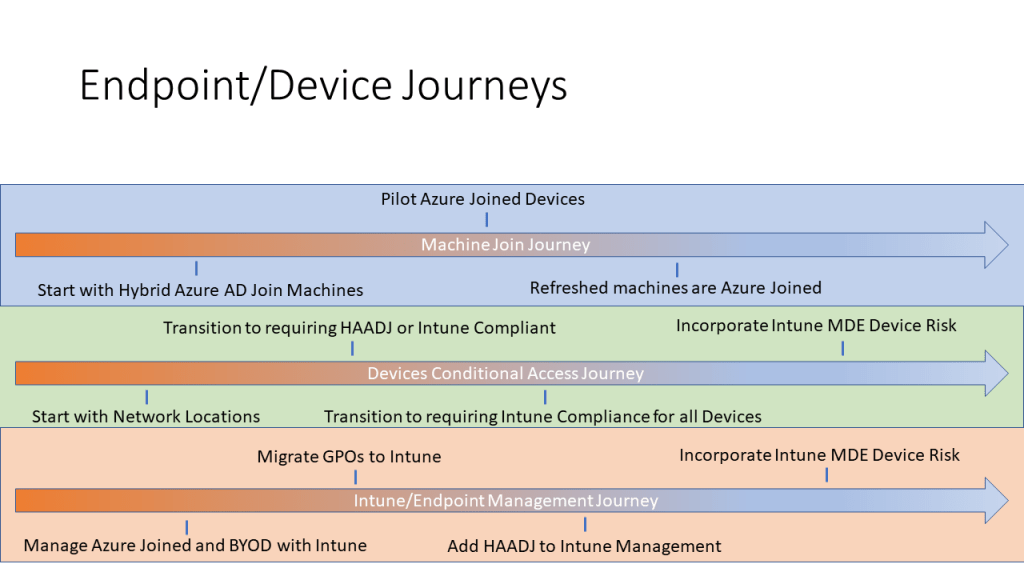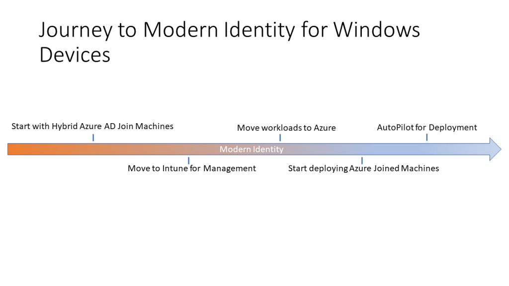 As mentioned above there is a journy that begins with Hybrid Azure AD Joined devices and continues through moving to Azure Joined Machines.