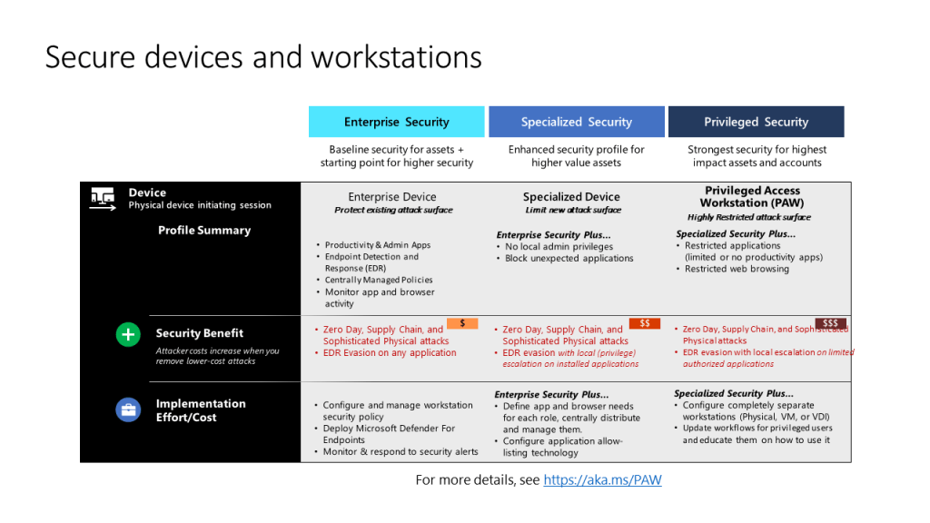 Enteprise Access Model is a model for securing Devices, Accounts, Intermediaries, and Interface. For the purpose of this dissussion we will be focusing on devices.