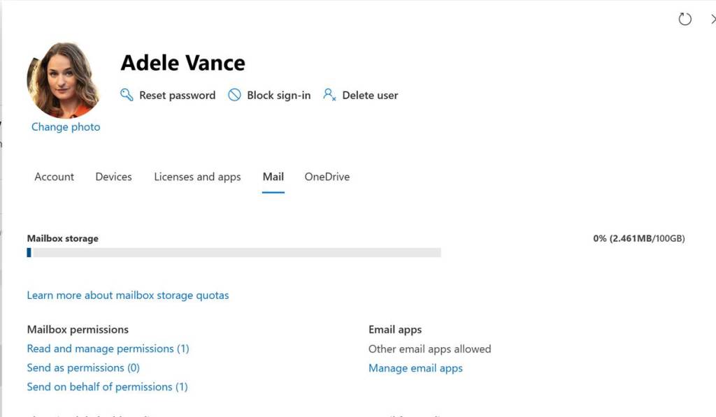 My steps were slightly different I am guessing due to changes in Office. In the Admin Portal I opened up the user properties and then selected Mail. Then I can configure Read and Manage, Send as, or Send on behalf permissions.