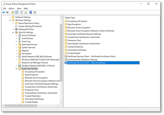Step 6: Locate and open the following setting: Certificate Services Client – Auto-Enrollment