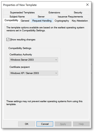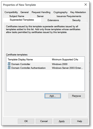 So, as seen above the most significant requirement is that the Secure LDAP certificate have Server Authentication as it’s purpose. But, there are other reasons why you may have a certificate on a Domain Controller such as for supporting services like Smart Card Logon or Windows Hello for Business (WHfB). So, you may want some additional application policies supported in the certificate you are going to issue to Domain Controllers. There are 3 certificate templates designed for use on Domain Controllers. Keep in mind technically you could use a Web Server Certificate Template to support LDAP over TLS. But the section above will provide reasons why to use one of the three templates designed for use on a Domain Controller.