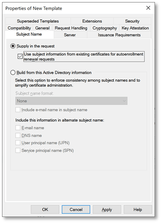 Step 10: Navigate to the Subject Name tab and change the setting to Supply in the request