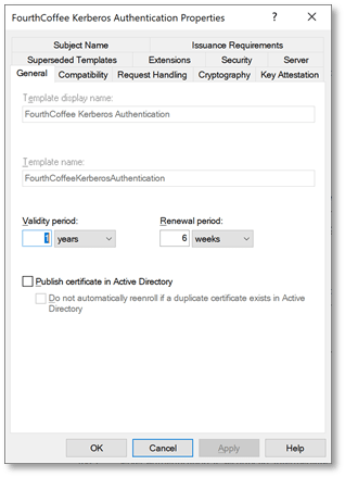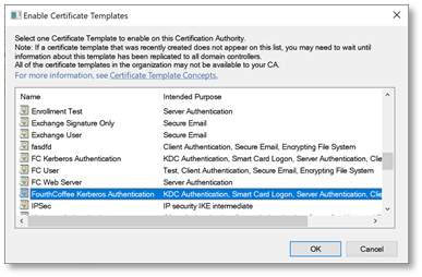 As you see the Kerberos Authentication certificate has the most Application Policies and SANs, and hence it is most likely to support almost any application you need to support, both now and in the future. So, this is the template that you would use in most scenarios.