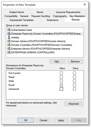 Give the New Service Account Enroll Permissions on the Certificate Template