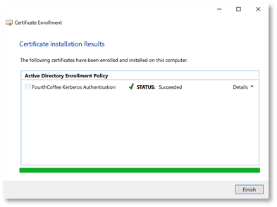 If you want to test enrollment and not wait for the autoenrollment client to run, you can login to the DC and run: certutil -pulse