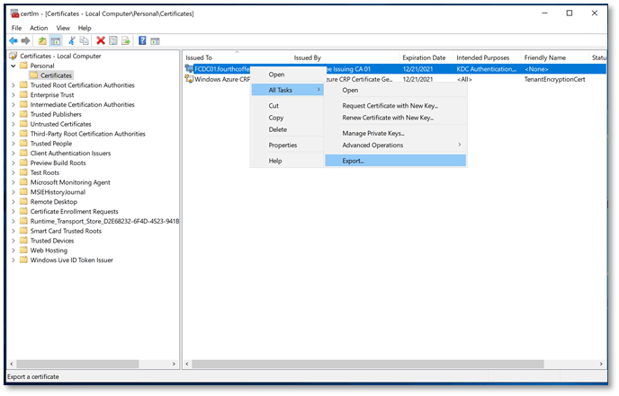 Step 10: Right-click on the certificate and click All Tasks then Manage Private Keys…