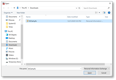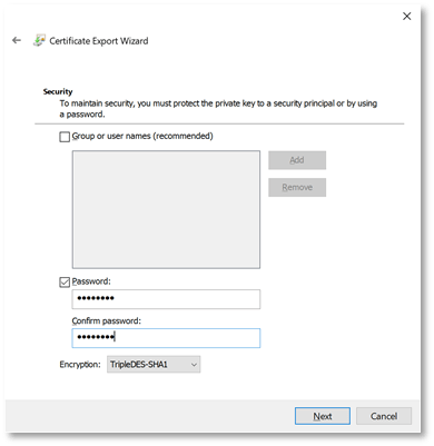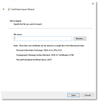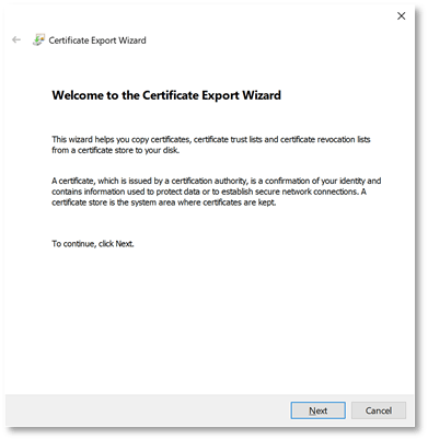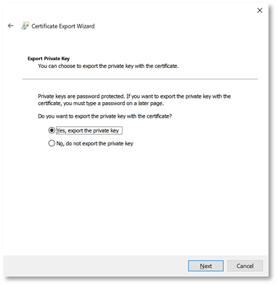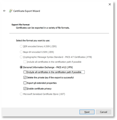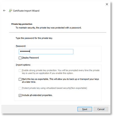 A private key that matches the certificate is present in the Local Computer’s store and is correctly associated with the certificate. The private key must not have strong private key protection enabled.