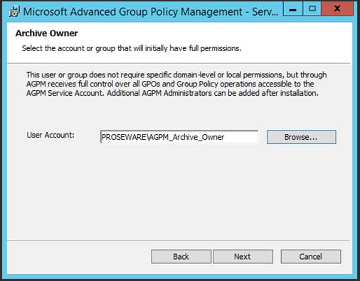 AGPM Administrator: The AGPM Administrator has full control of AGPM including the AGPM archive.