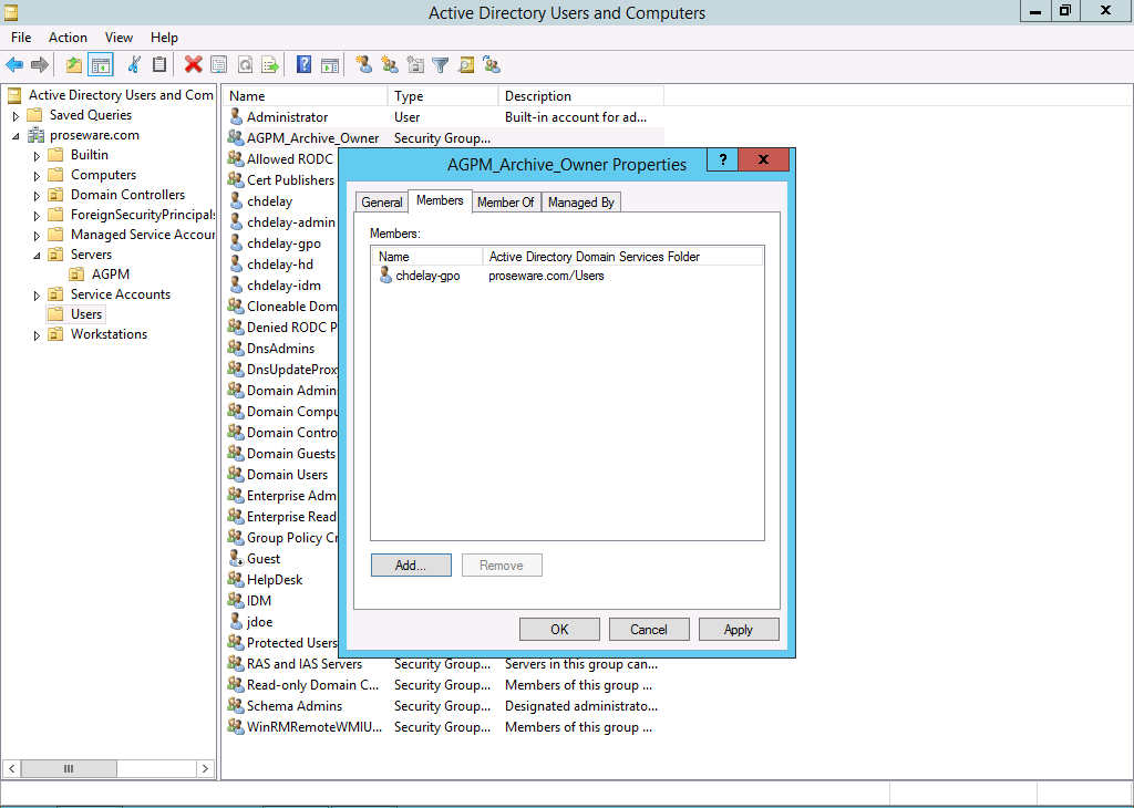 There really are two options for provisioning access. The first is to create Active Directory security group and grant those groups access to a role within AGPM. For example, you could create an AGPM Admins group in AD and then provision that group Full Control within AGPM. Then to provision access to the AGPM Administrator role you would simply add users to the AGPM Admins group. The alternative approach is that you just provision access to users within AGPM. From a security perspective, I prefer the second method as it reduces the number of users or groups that will have the permissions necessary to provision access to AGPM. In the examples below I will be demonstrating the second technique for granting access, specifically using AGPM to directly provision access to user.
