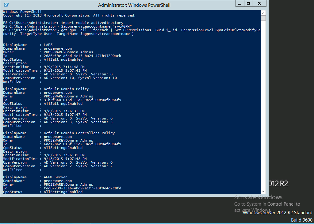 get-gpo -all | foreach { Set-GPPermissions -Guid $_.id -PermissionLevel GpoEditDeleteModifySecurity -TargetType User -TargetName $agpmserviceaccountname }