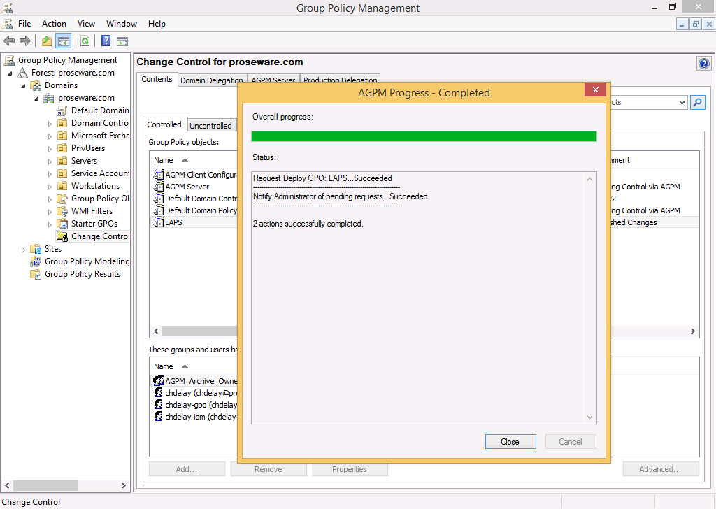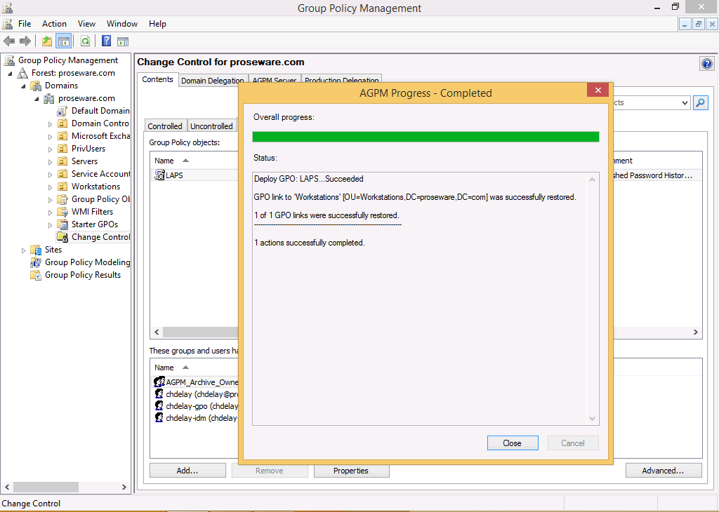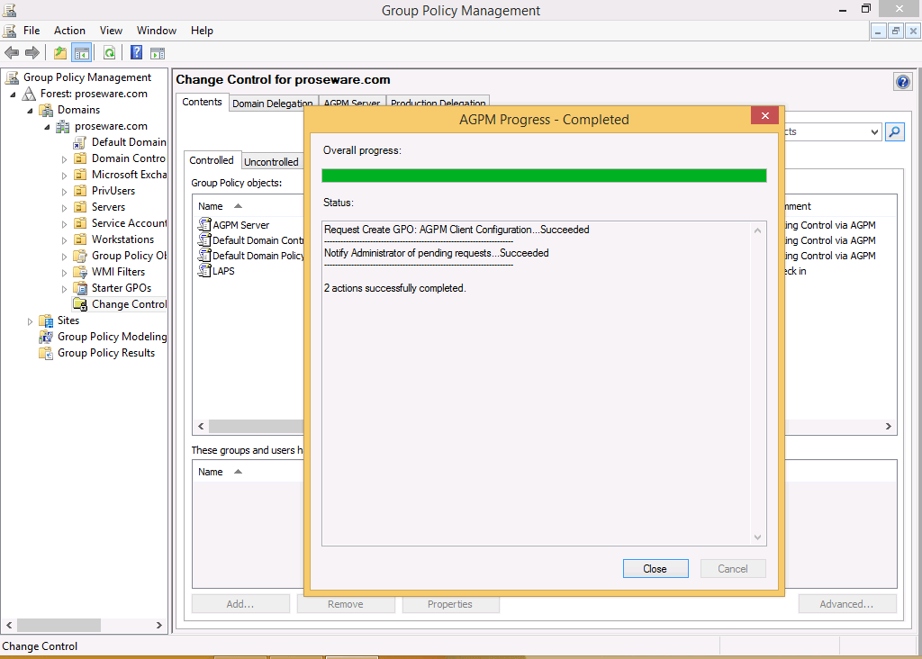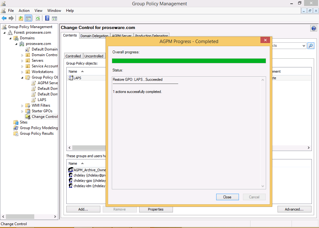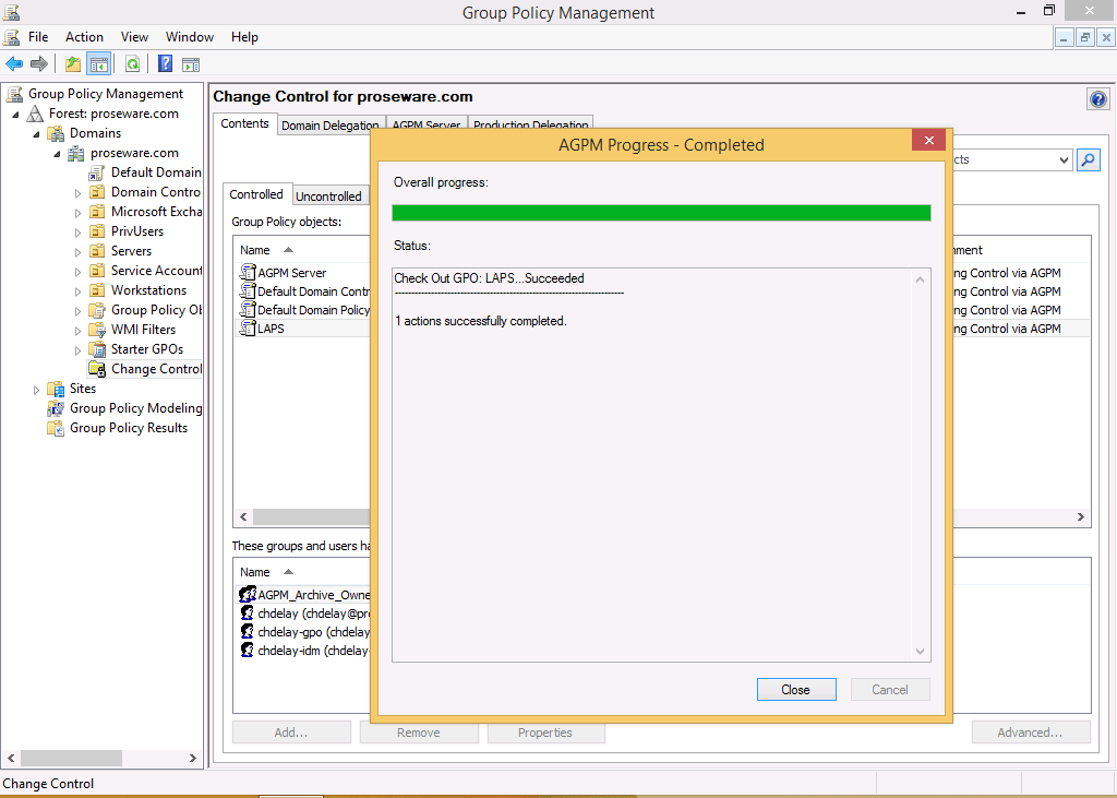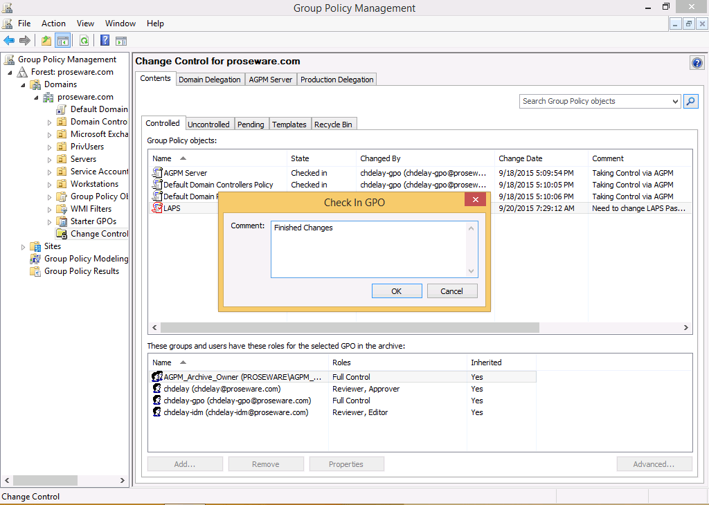 Once you have given the AGPM Service Account access to the GPOs, you can put them under Control of AGPM. Once the GPOs are under the control of AGPM, all group policy management can be done via AGPM. The following steps can be followed to take control of existing GPOs:
