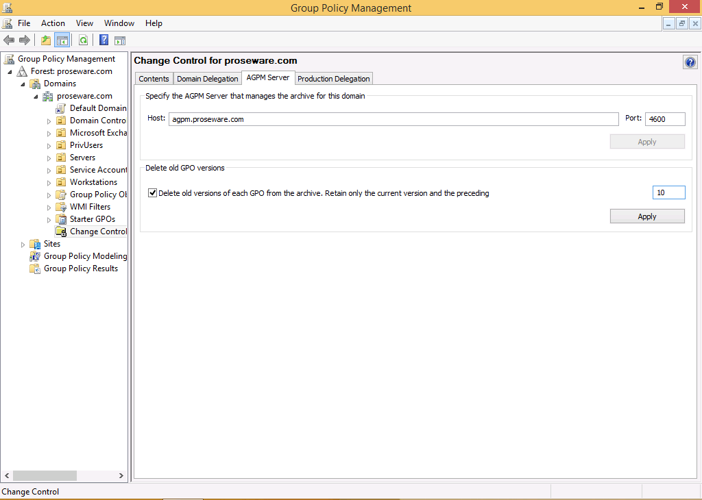 AGPM allows you to control how much of the GPO history is retained. If you wish to limit how much of that history is retained you can navigate to the AGPM Server tab. Next, Check the option Delete old versions of each GPO from the archive. Retain only the current version and the preceding. Then enter a number for how many of the preceding GPOs you would like to maintain in the archive and click Apply.
