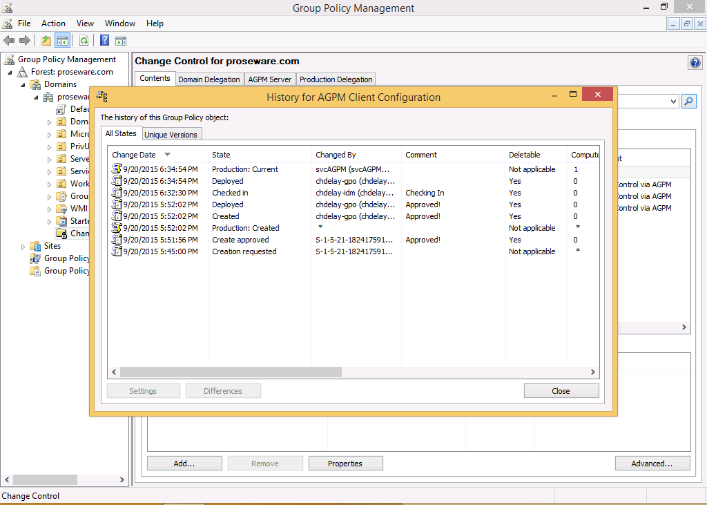 You can then view the entire history of the GPO, including Creations, Check Outs, Check Ins and Deployments.