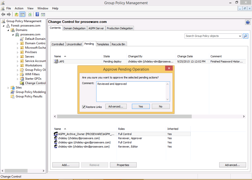 Approver: In addition to Reviewer and Editor capabilities, the Approver can approve the GPO Creation, GPO Deployment. Approvers can also Create GPOs and Deploy GPOs of their own creation without approval.