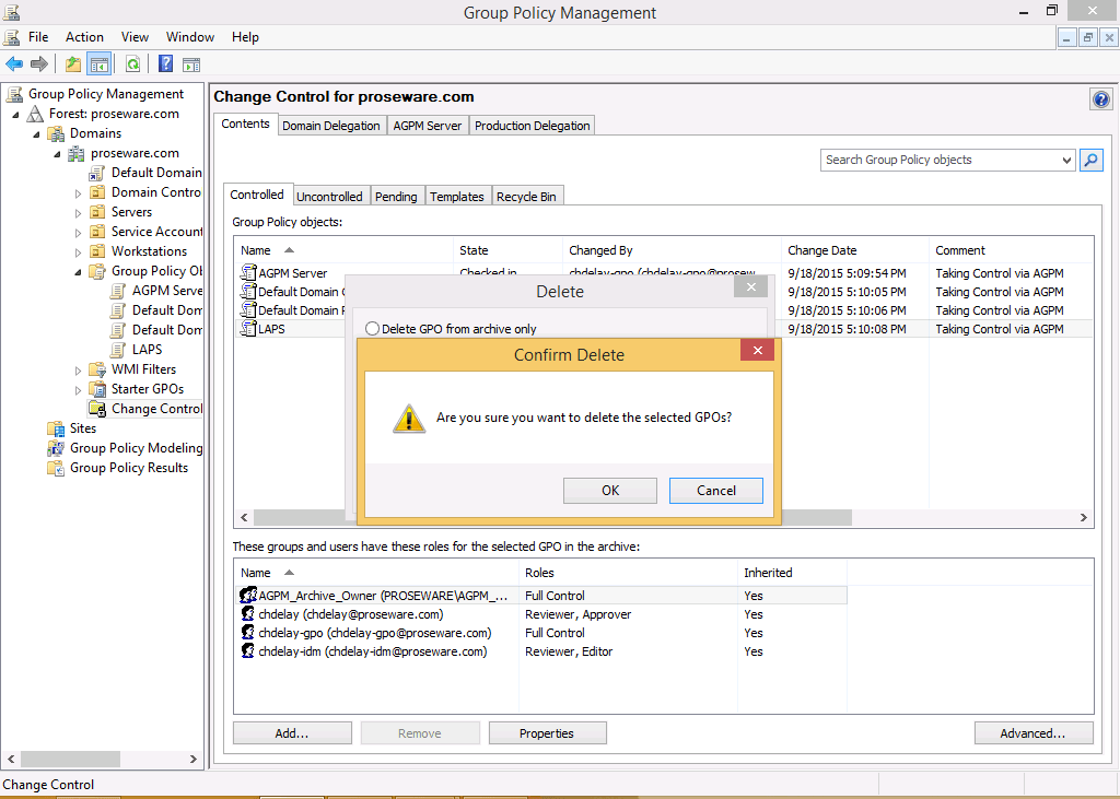 You will then be asked Are you sure you want to delete the selected GPO?. Click OK to complete the deletion.