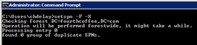 Having the same SPN registered on multiple Active Directory objects will cause authentication issues. This is due to the fact that when the Domain Controller looks up the SPN it will see it registered in multiple place and will be unable to “know” which object to issue the service ticket. When this happens a KDC Event 11 is logged in the event log. To check for duplicate SPNs in the forest, use the following syntax with the setspn.exe tool: