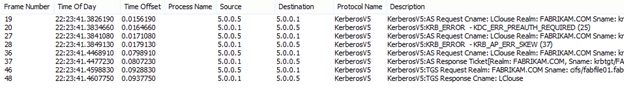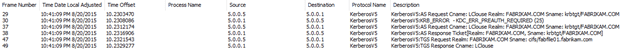 Below is a screen shot that of a network trace showing the interaction between the client and the KDC during the Kerberos Authentication Process.