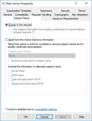 To not enable Subject Alternative Names in all Certificate request. If this is enabled any user can potentially request a SAN of their choosing a corticate that they request. See the following link for more information:
