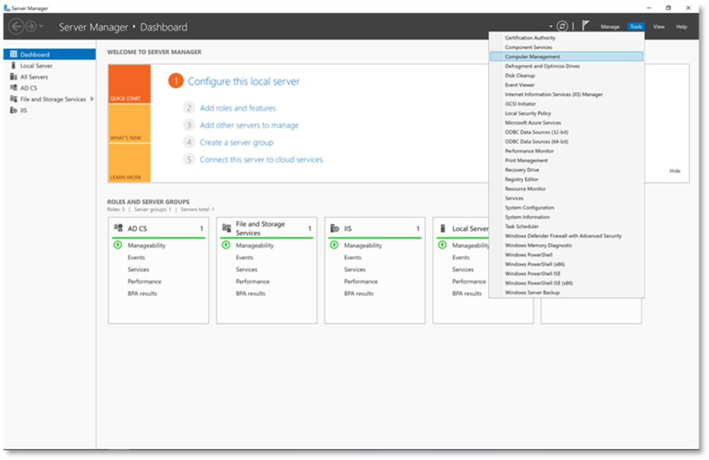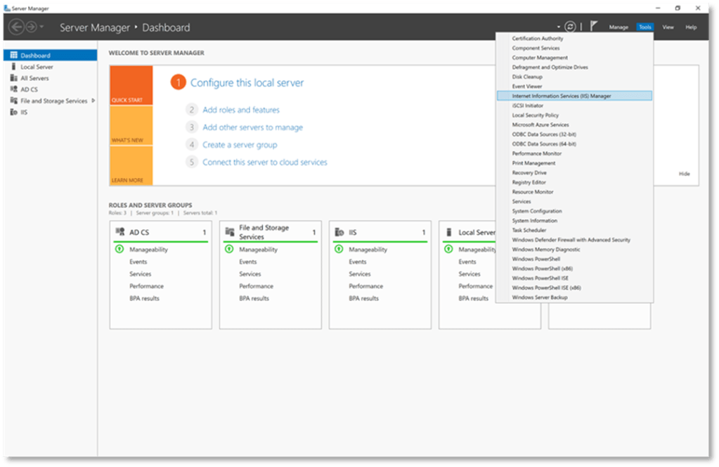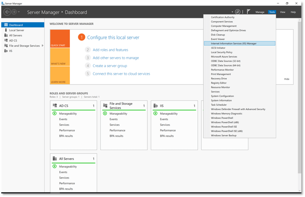 Step 7: From the Tools menu select Internet Information (IIS) Manager
