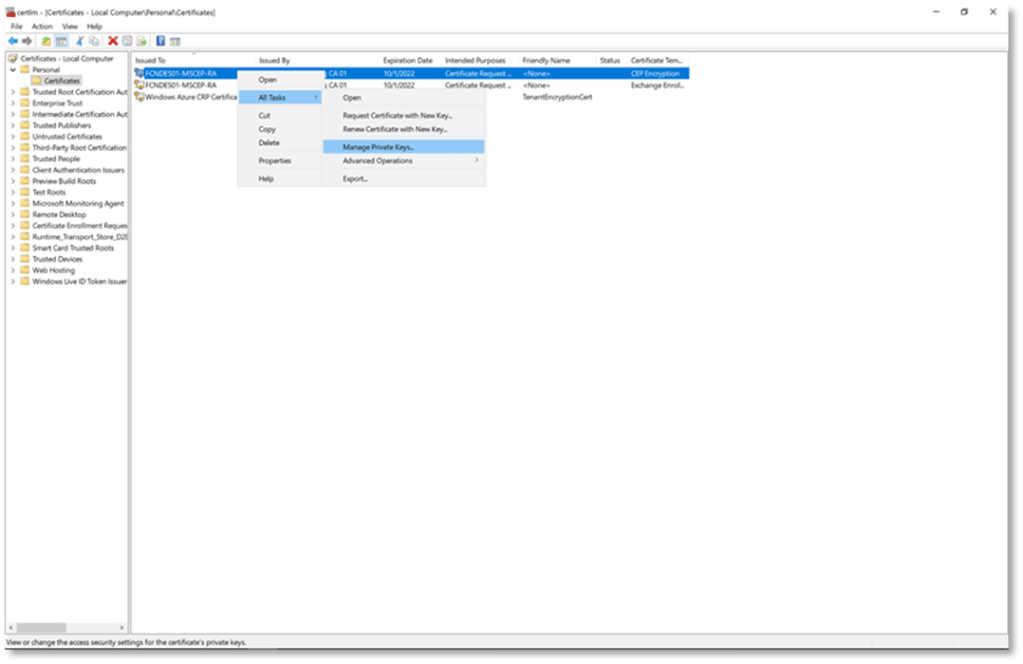 Thanks to Hasain Alshakarti for putting the toolbox and process to test NDES enrollment.