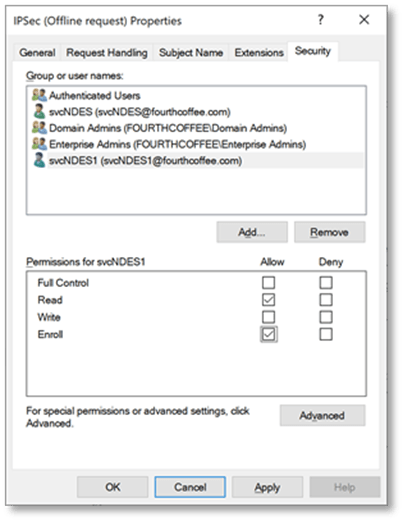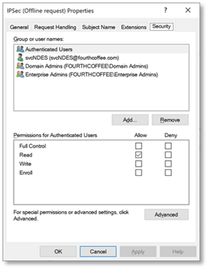 Enroll and Autoenrollment permissions on Certificate Templates should be restricted to only those user or computers that should be enrolling or autoenrolling for this type of certificate